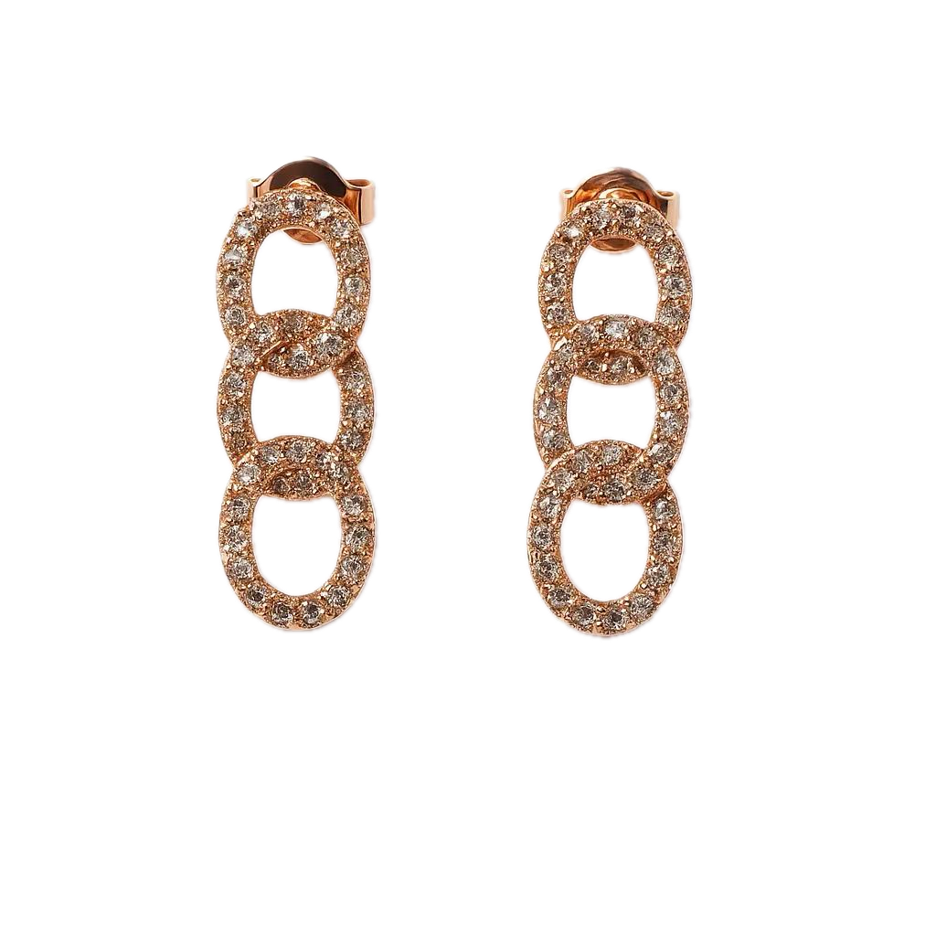 These elegant earrings feature a triple chain link design, crafted from 925 silver and plated with a lustrous rose gold finish. Each link is adorned with pave-set zircons, adding a touch of sparkle and sophistication. The earrings have a stud-back closure, making them suitable for pierced ears.
